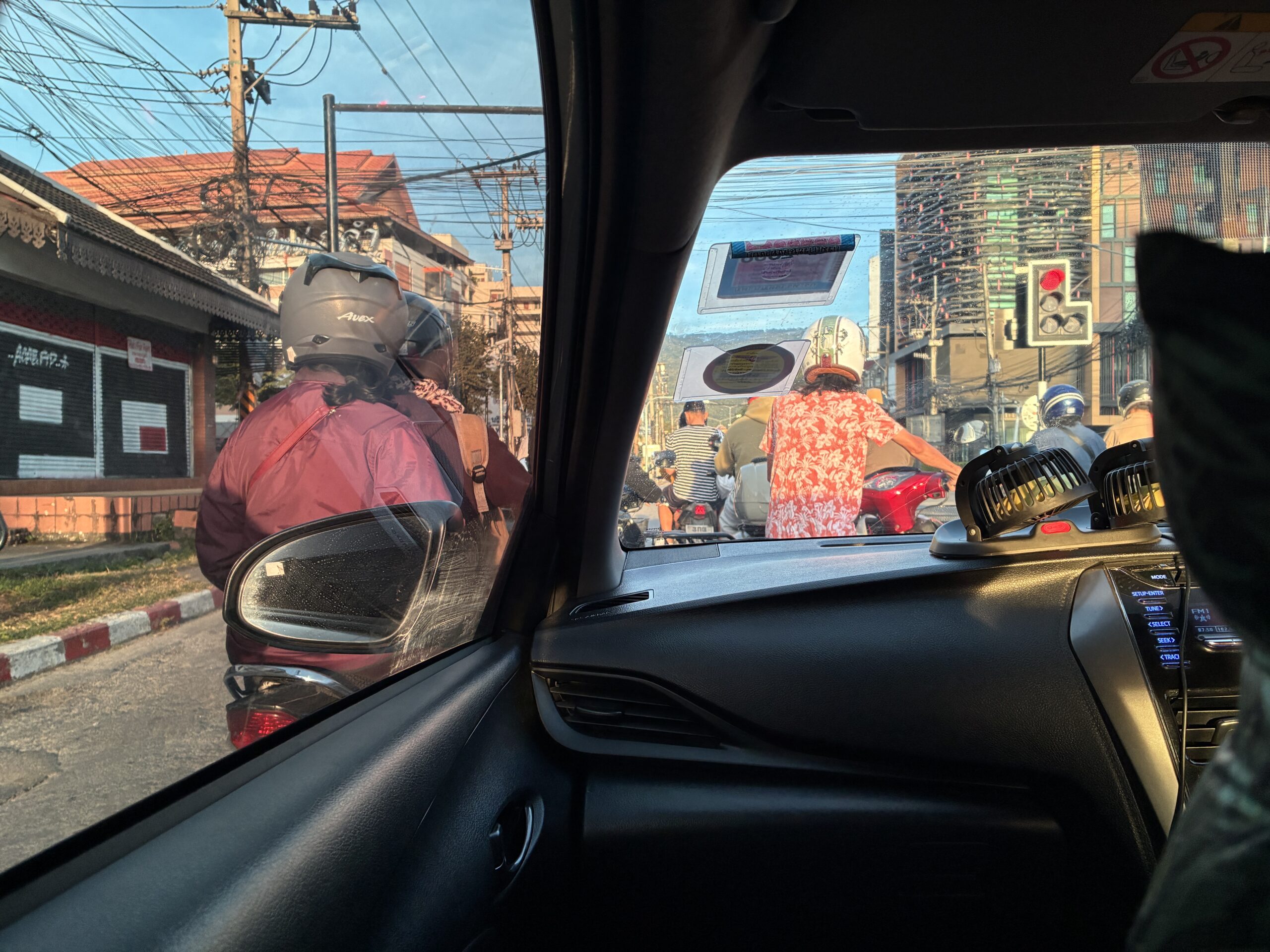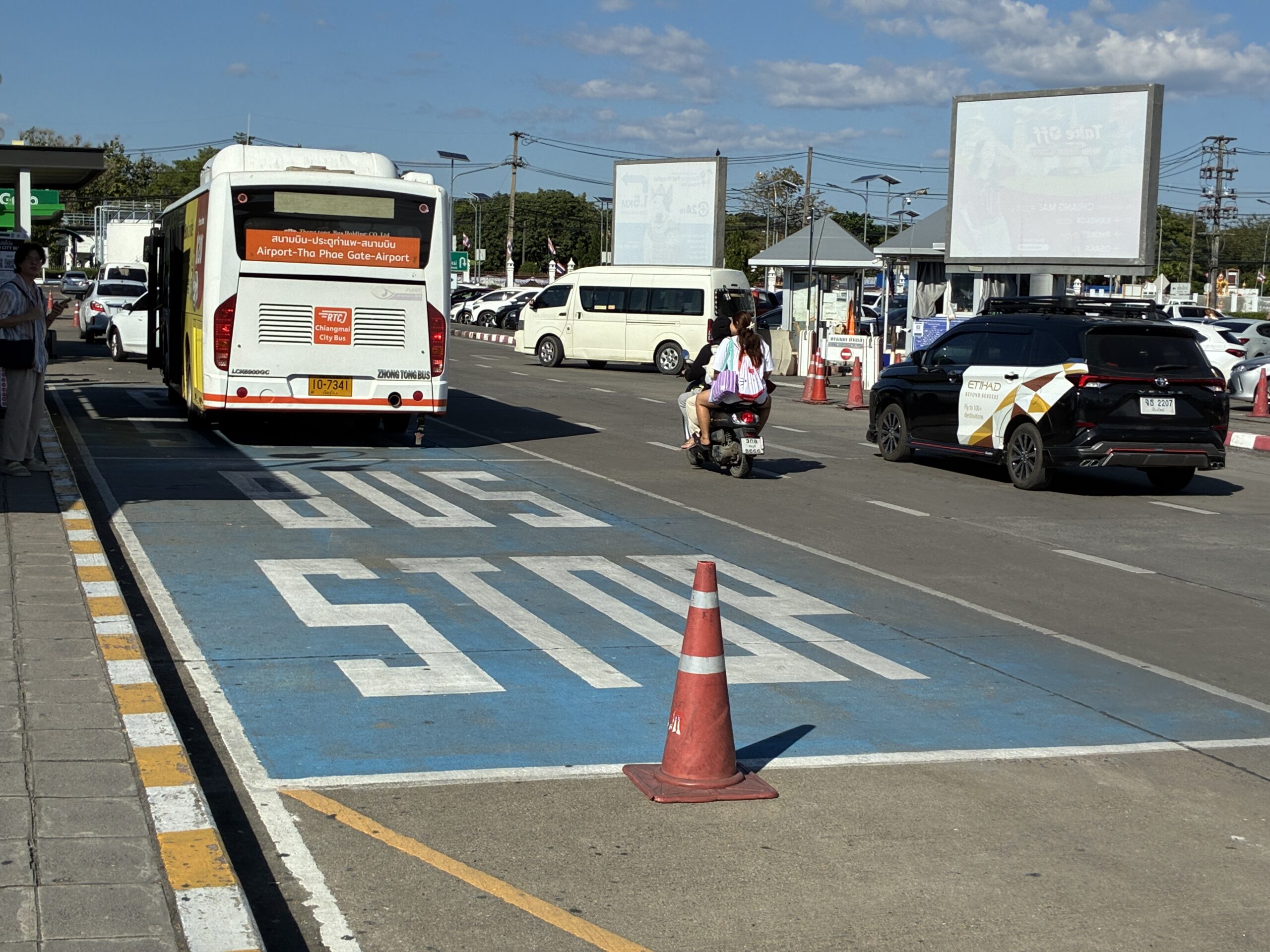 早速空港前にノーヘル3人乗り原付の現地民を発見。やっぱり自分はタイに来た。