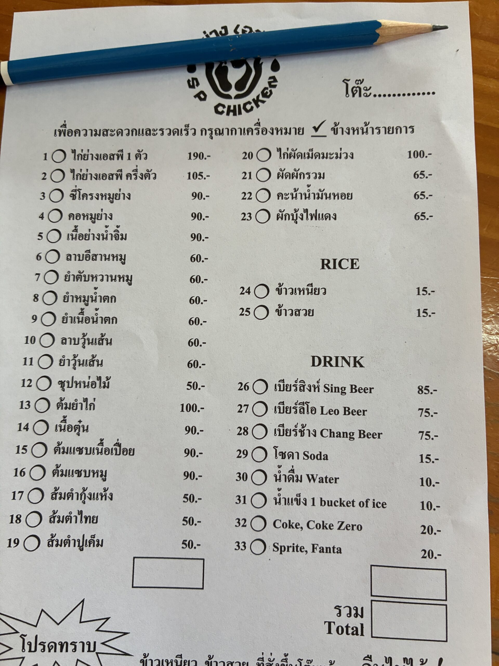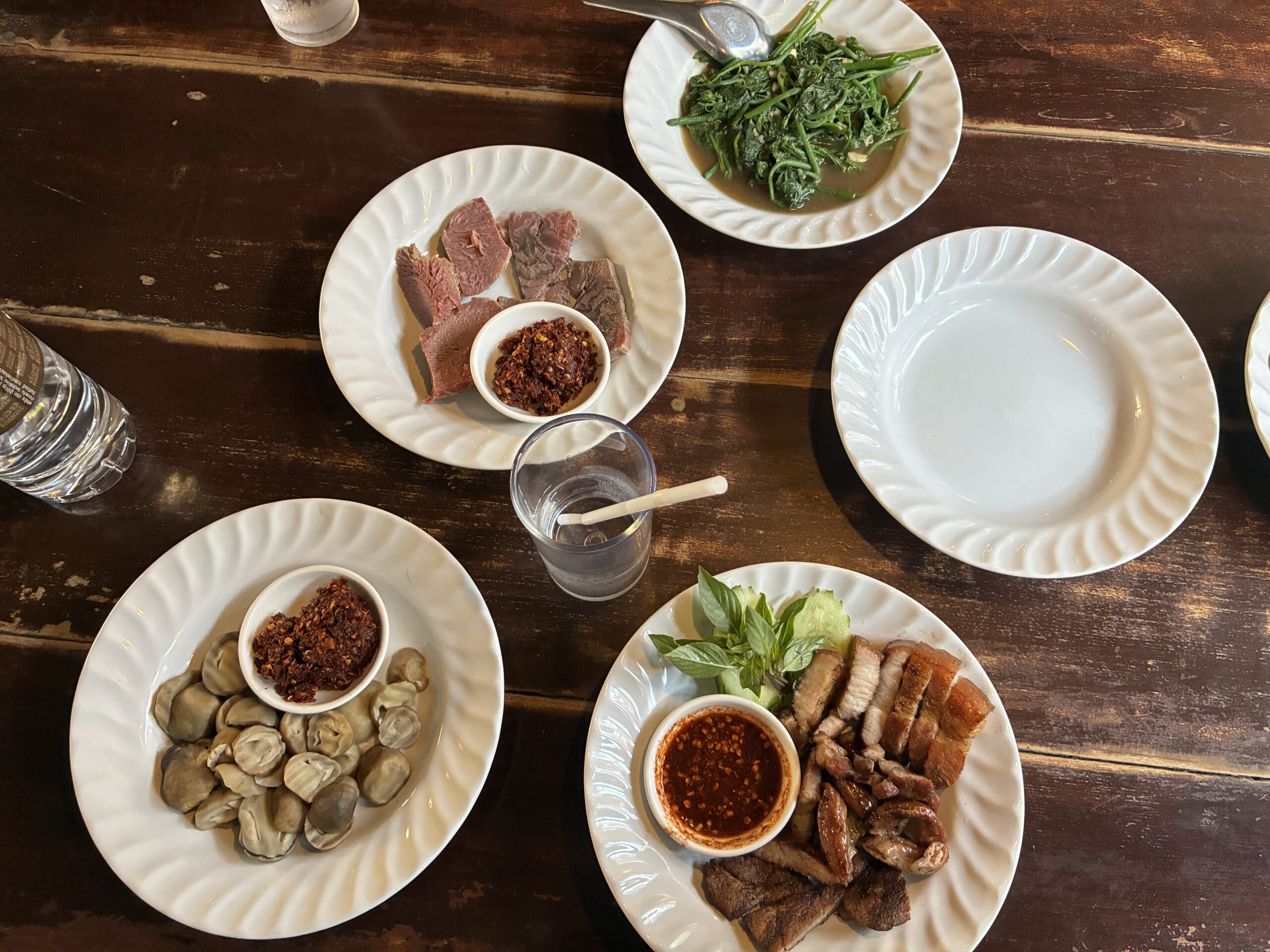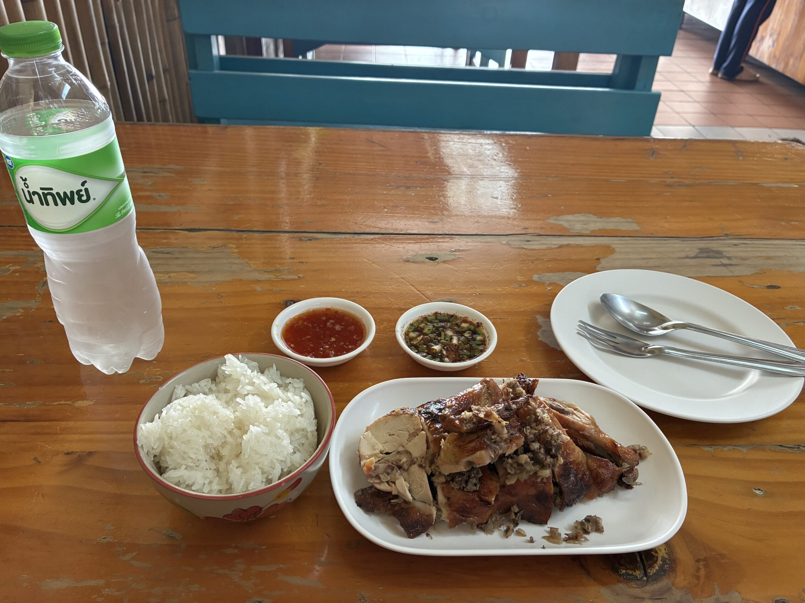 当たり前ですが、水代もお金がかかります。10タイバーツなので50円。改めて日本の外食産業と文化に感謝。