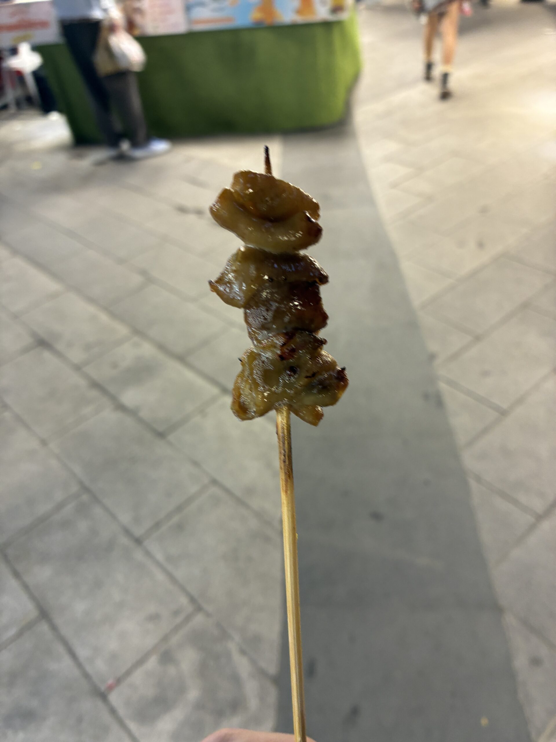 「今回絶対屋台ではご飯を食べない」と意気込んでいたのですが、百聞は一見にしかずということで、焼き鳥のようなものを購入。