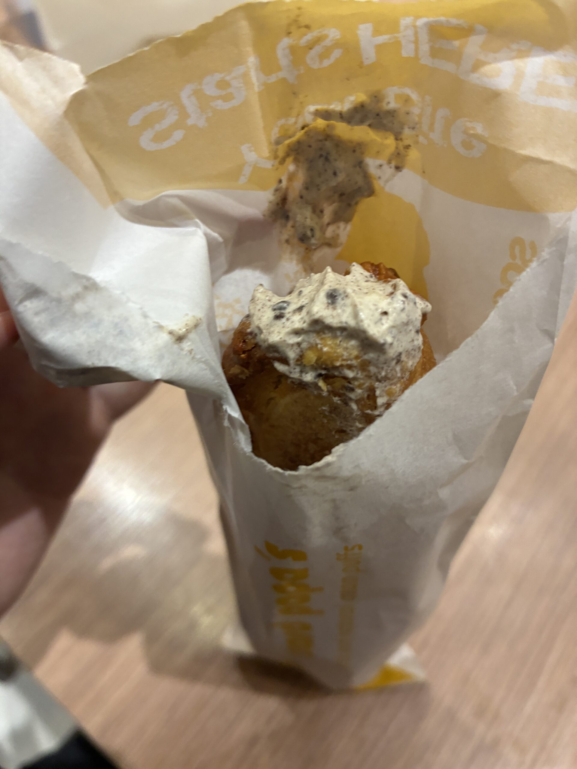 店内に入ってバナナ味のお菓子?のようなものを購入。これもめちゃくちゃ美味しかったです。日本円で200円くらいなので、日本と特に物価の違いは分かりませんでした。
