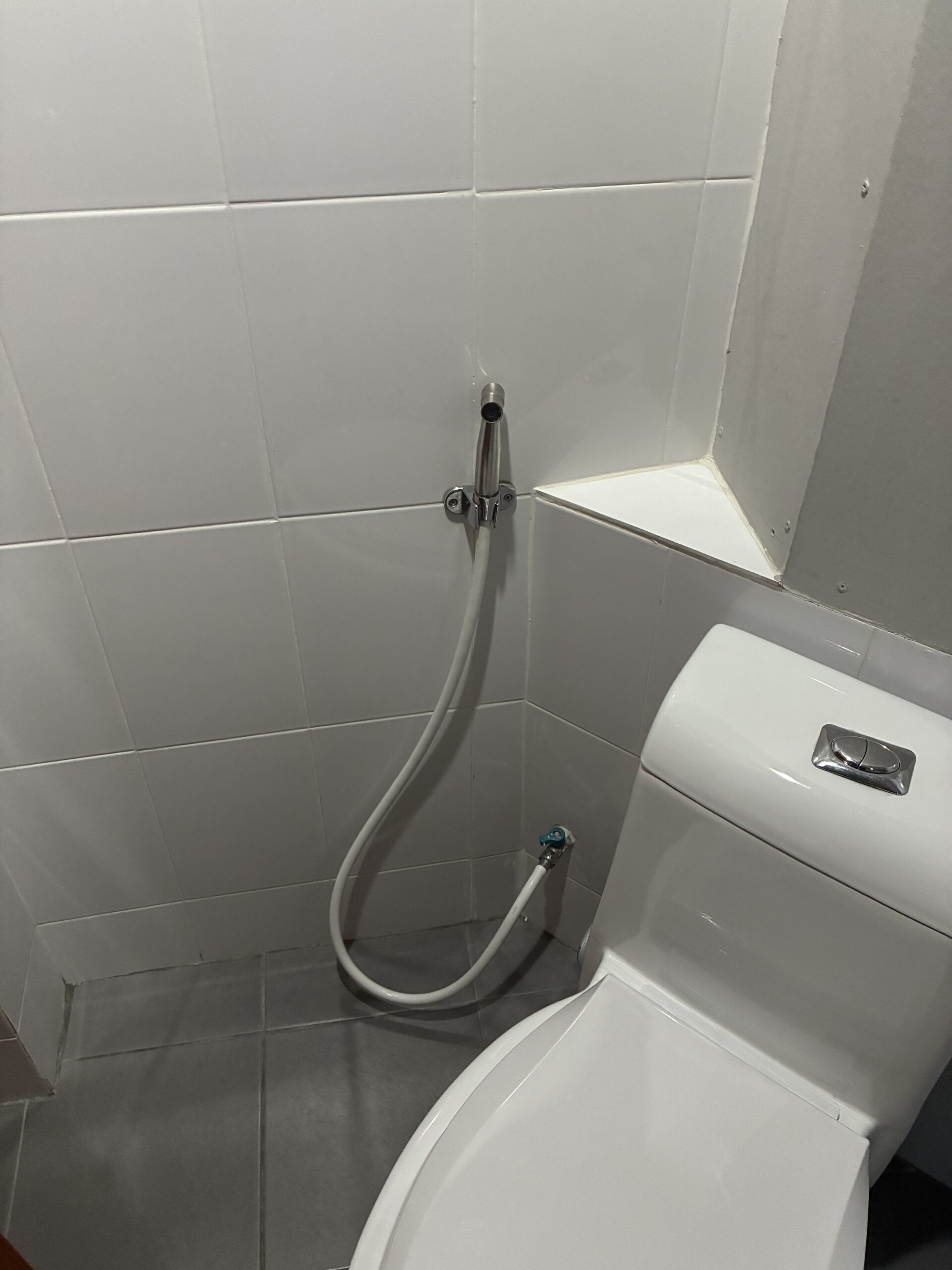 もちろんウォシュレットもなしで、このホースでお尻を洗うのかも?かといって使い方も全くわからないし清潔かも分からないので、今回はスルーしました。