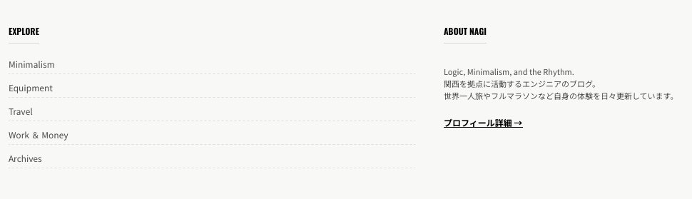 既存の有料テーマでは標準搭載されているものばかりですが、ミニマリストである私からすると当サイトであるNagi Rhythmには不要な機能を徹底的に排除しました。