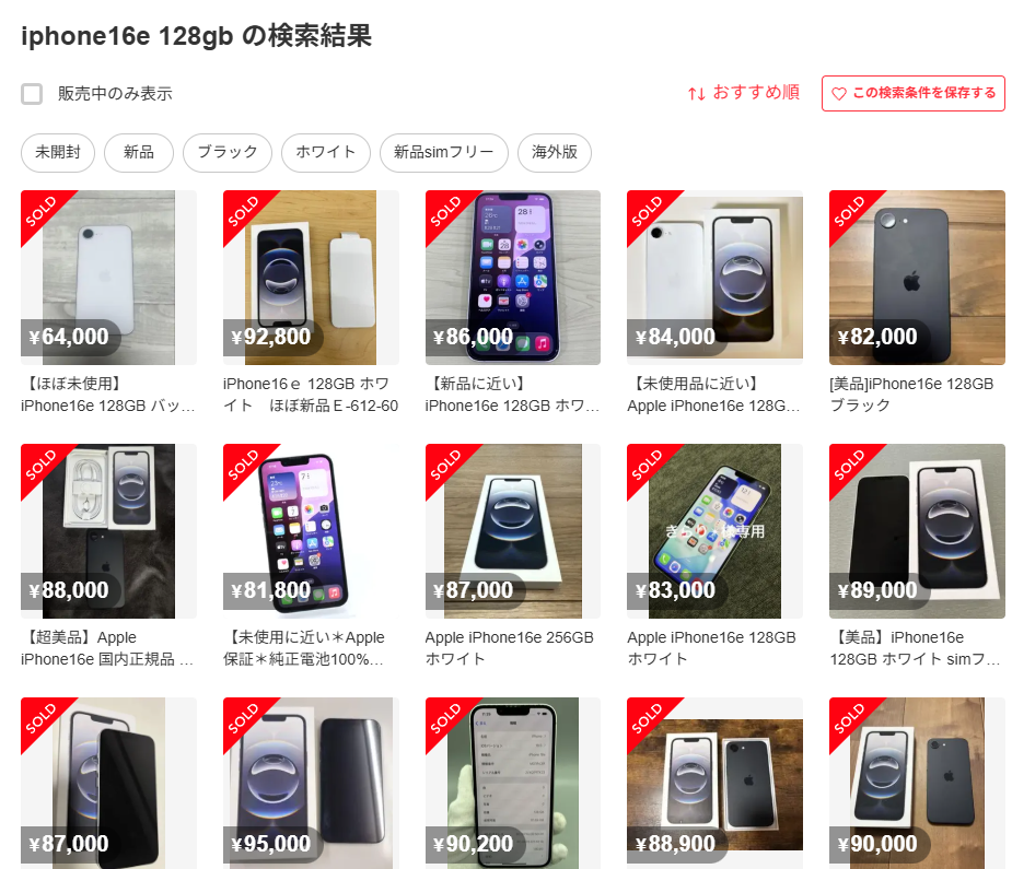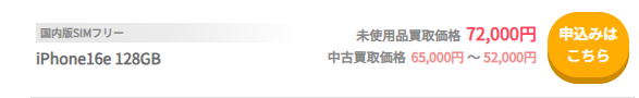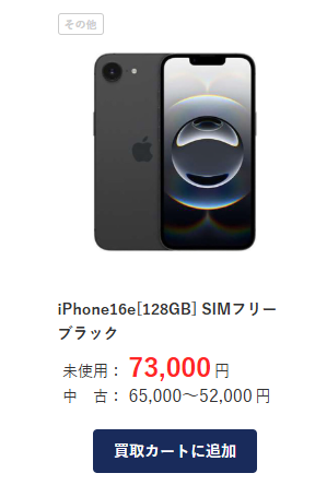 - iPhone 16e(128GB)売却: 65,000-60000円