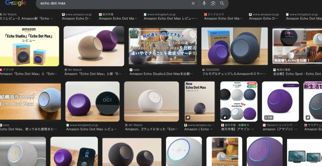 ちょうどAmazonセールのタイミングで価格差がほぼなくなっており、この3つとも6000-7000円台ならどうせ買うなら一番音が良さそうなEcho Dot Maxを試してみようと思って購入しました。